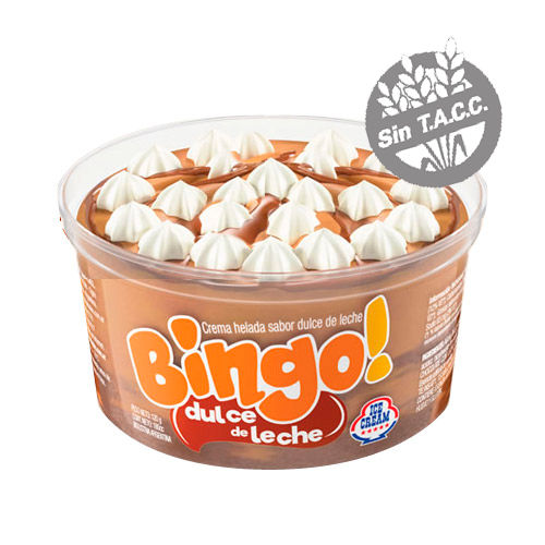 Crema Helada de Dulce de Leche y sabor a Chantilly cubierta con Salsa de Dulce de Leche. Sin TACC. Presentación: – Envase de 105 grs. – Caja x 12 unidades.