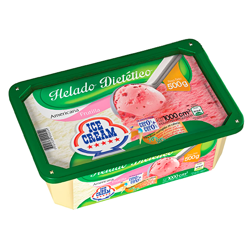 Helado de agua dietético sabor a Frutilla y Americana reducido en calorías y bajo valor glucídico. Libre de Gluten.Pote x 500 grs.
